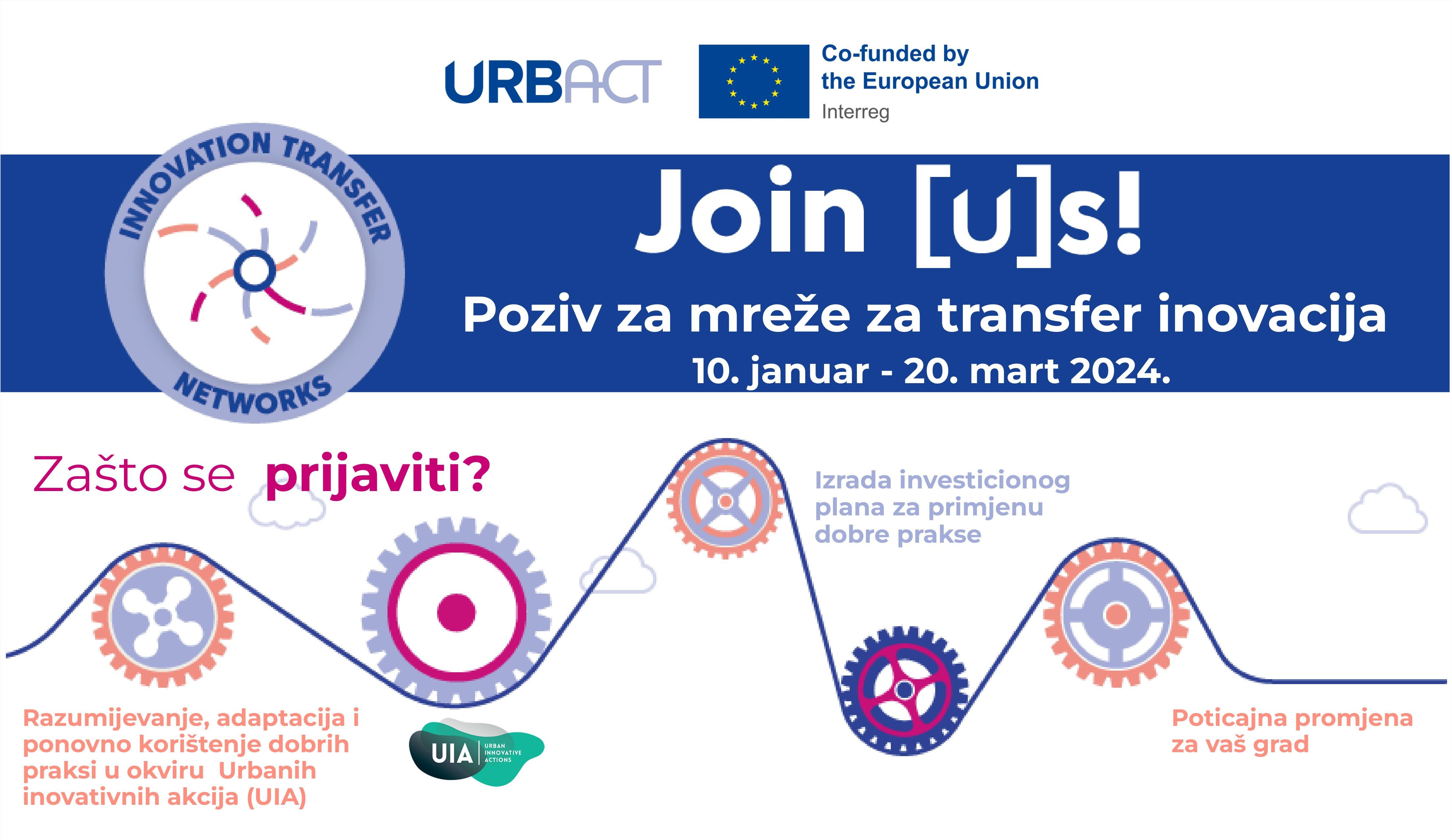 U okviru međuregionalnog programa URBACT IV objavljen je poziv za mreže za transfer inovacija (Innovation Transfer Networks - ITN) koji je otvoren od 10. januara do 20. marta 2024. godine.
