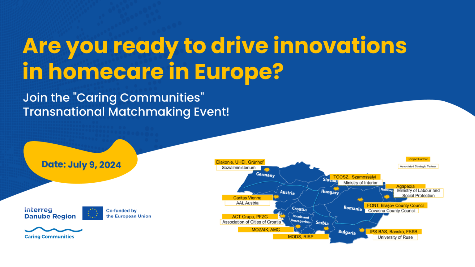Program za Dunavski region (Interreg Danube Region) organizuje prvi digitalni događaj Transnacionalnog povezivanja u sklopu projekta “Brižne zajednice” koji će se održati online 9. Jula 2024.godine u periodu od 10:00 do 16:30 sati.